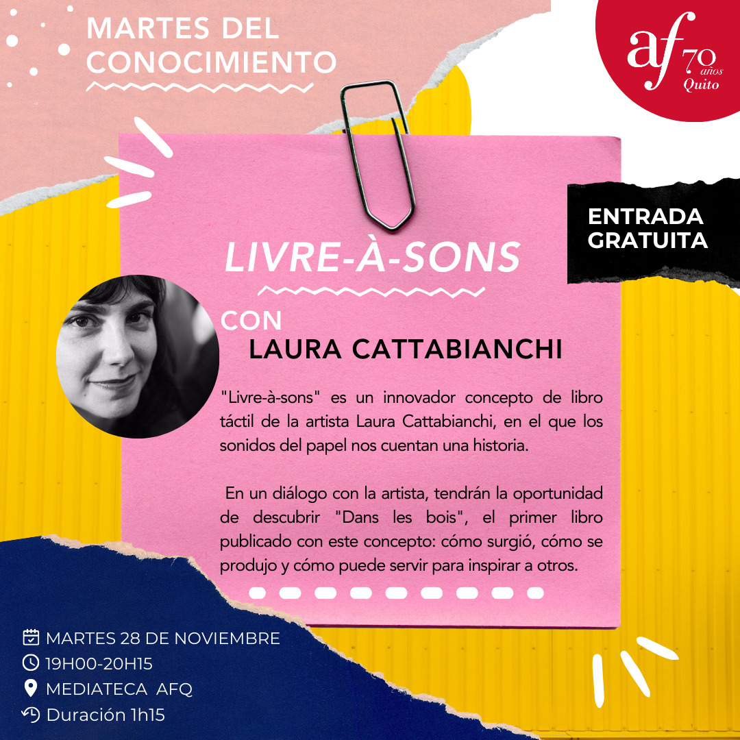 En novembre 2023 j’ai eu la chance d’être invitée en Équateur par l’Alliance Française et la Feria Internacional del Libro de Quito pour présenter mon premier livre tactile et sonore Dans les bois et le projet Livre-à-sons.